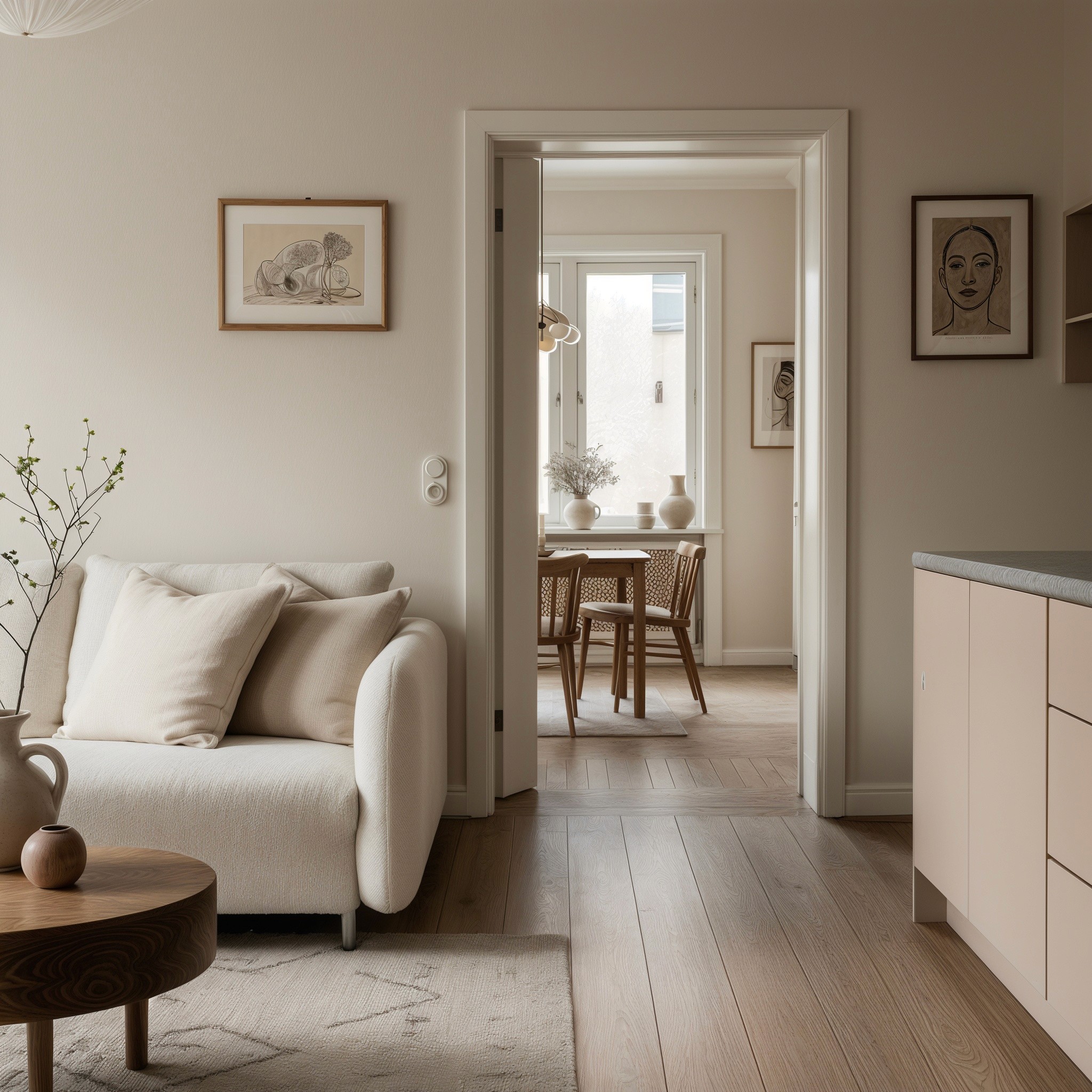 This 55 m² apartment in central Gothenburg was redesigned to maximise light and movement. We developed two layout options to improve the flow between the living area and kitchen and to add storage and a compact workspace. No structural changes were made.